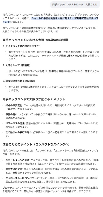 AIに「両手バックハンドにおける大振りとは何か」と質問してみたところ、非常に興味深い答えが返ってきました。